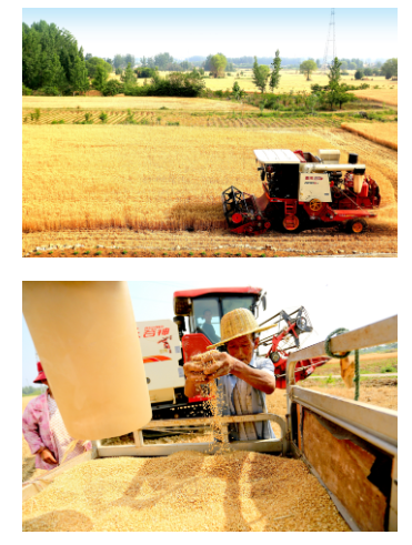 风吹麦浪穗飘香,小麦开镰收割忙。5月21日,在枣庄高新区张范街道的金色麦田里,收割机来回穿梭,一排排麦穗被精准收割、脱粒、装车,现场一派热火朝天的丰收景象。 (记者王正摄)