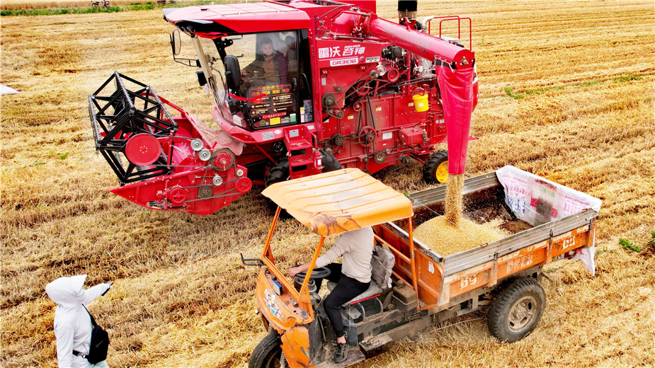 5月23日,小麦收割机在滕州东沙河街道颜吉山村进行作业。时下,滕州小麦陆续进入收割期,农民群众抓住晴好天气窗口期,全力抢收小麦,为全年粮食丰收夯实基础。记者 王龙飞摄
